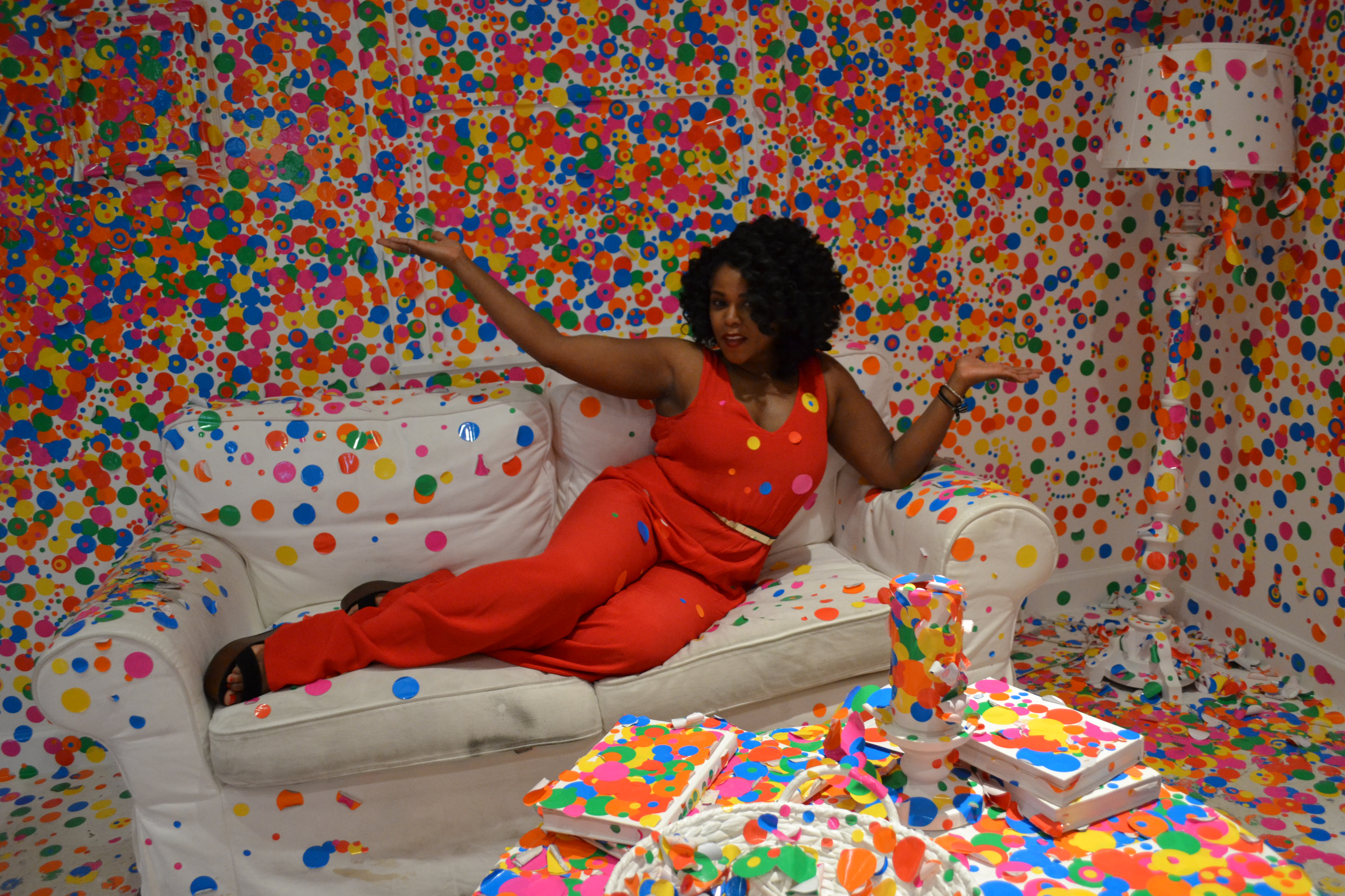 When I learned about The Obliteration Room by Japanese artist Yayoi Kusama, I immediately put it on my “must do” list. The artist built a tiny house with a completely white interior. The entire space was void of any color – furniture, books, kitchen items, electronics, the walls, everything was white. Now, here is the fun part, visitors were invited to apply colorful stickers, specially designed by the artist, to everything and anything in the house!